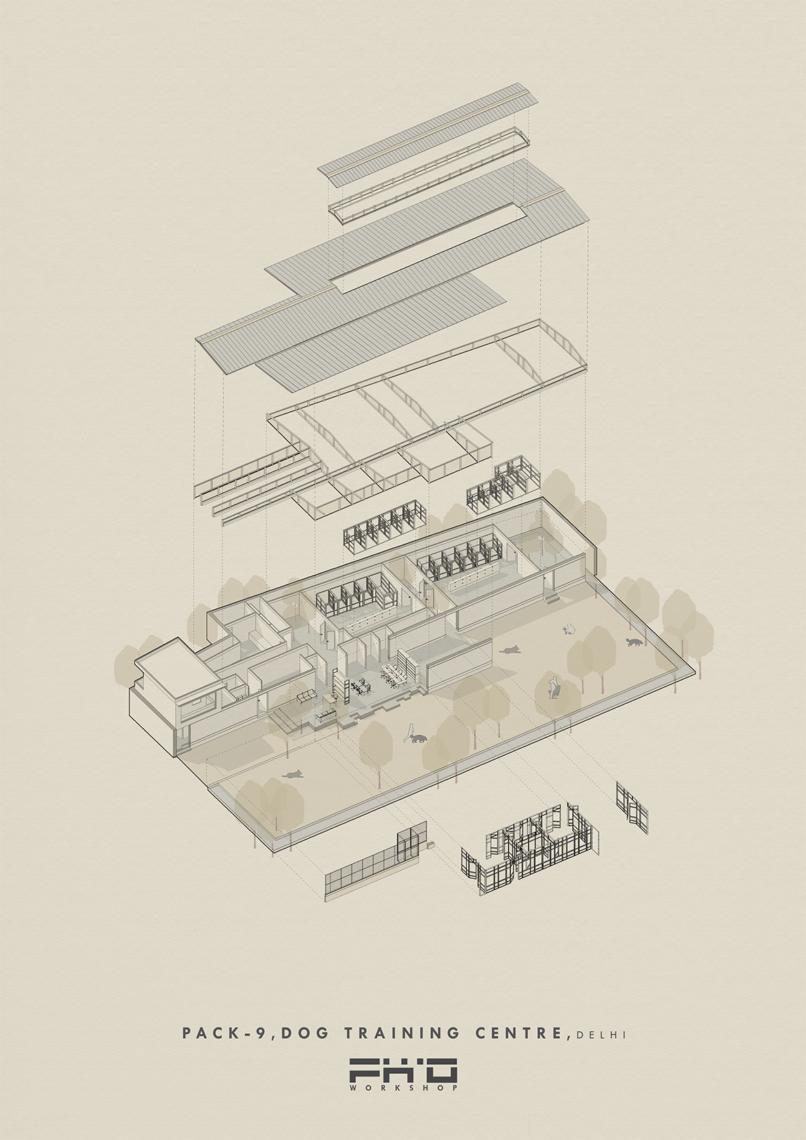 Pack-9 is designed with a deep understanding of movement, behavior, and adaptability. The layout balances structured training zones with open, interactive spaces, ensuring a seamless transition between controlled exercises and free play. Durable yet comfortable materials—non-slip flooring, easy-to-clean surfaces, and weather-resistant outdoor areas—ensure functionality without compromising aesthetics. The spatial organization prioritizes safety and accessibility, with designated pathways for trainers, handlers, and visitors. Natural ventilation and strategic landscaping create a stress-free environment for both dogs and their trainers.